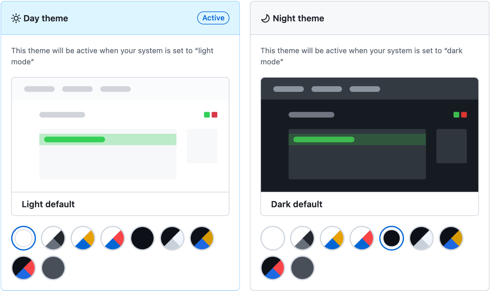 Currently, GitHub supports the following themes: